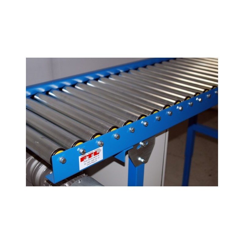 Aufbau Rollenbahn: Rollenbahn-Grundkonstruktion aus kaltgerollten U-Stahlprofilen und Stabilisator-Quertraversen