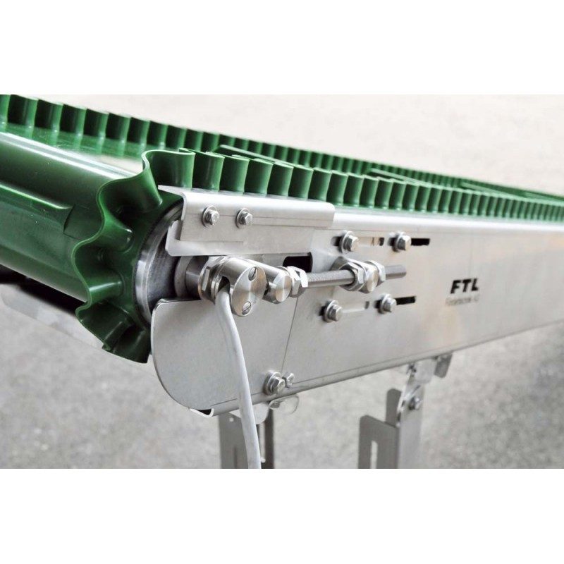 Aufbau Förderband: Eine mehrfache Blechabkantung, sowie die integrierte Gurtspannvorrichtung ermöglichen einen störungsfreien