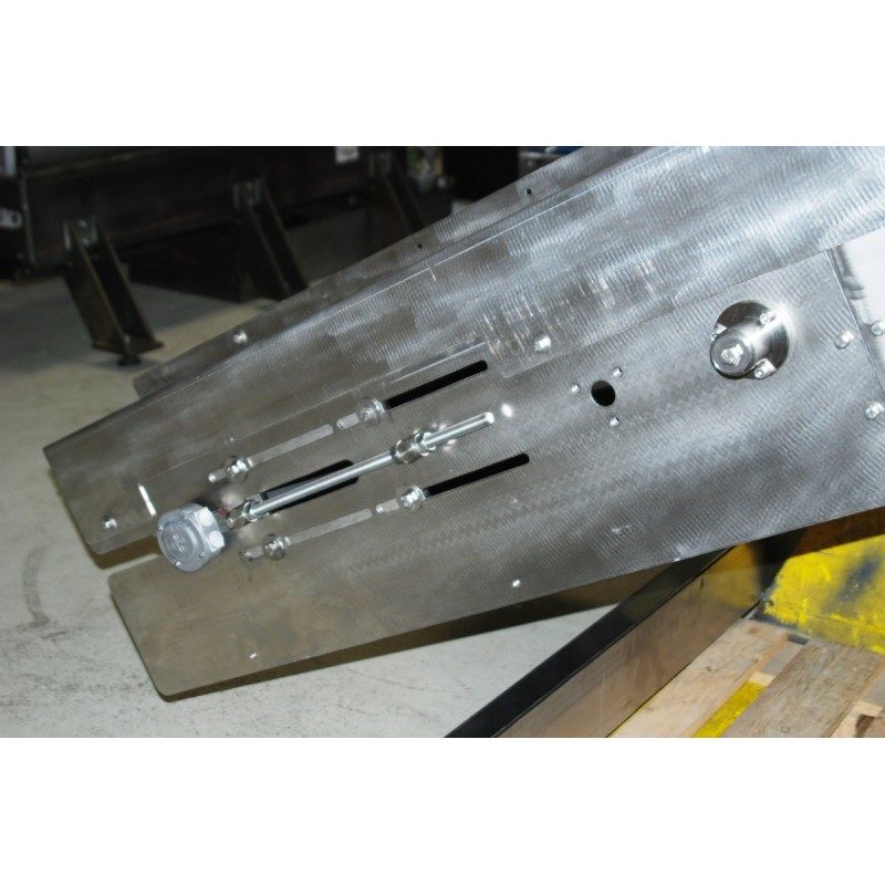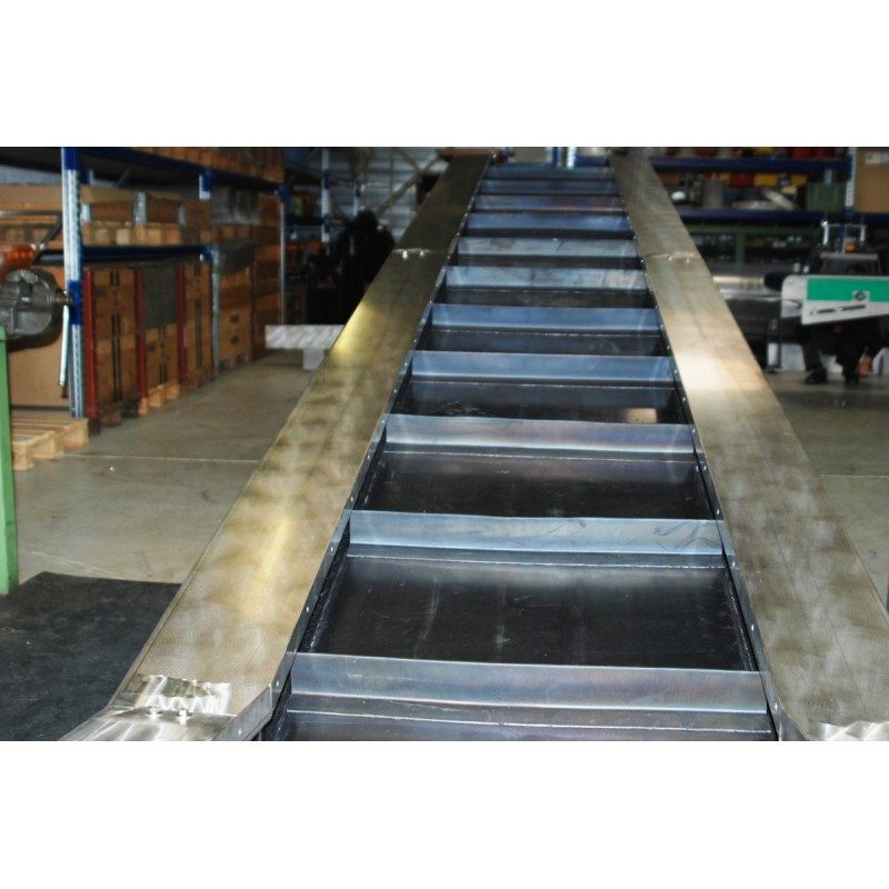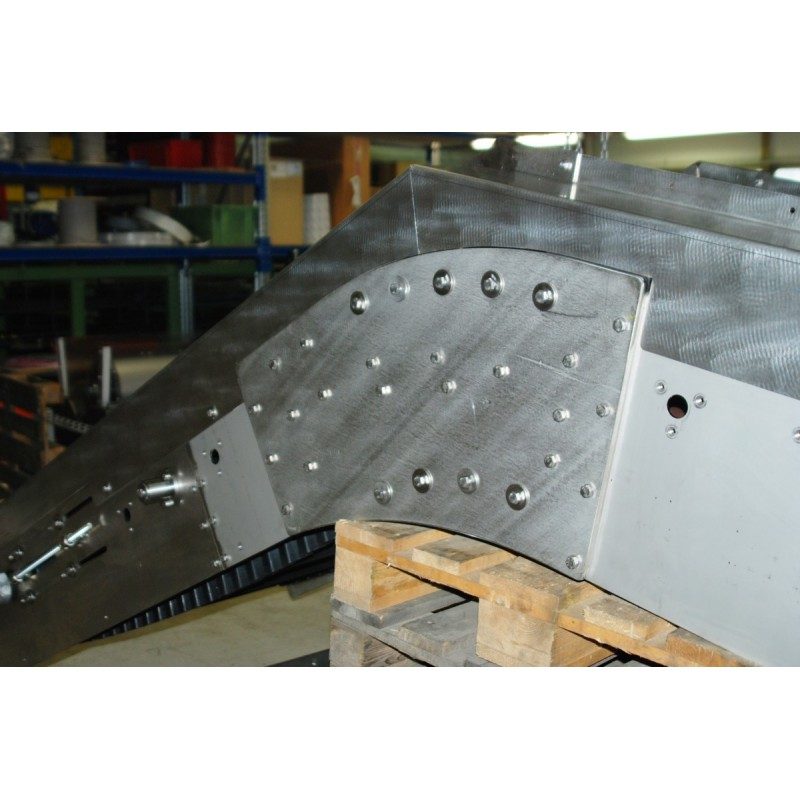 Die Neugestaltung der gesamten Produktionsanlage erforderte auf die beschränkten Platzverhältnisse abgestimmte Förderbänder. Um den Umbautermin einhalten zu können, mussten die beiden Förderbänder in einem engen Zeitplan konstruiert, realisiert und eingebaut werden. Da in der Anlage viele Materialien magnetisch sortiert werden, wurden die Grundkonstruktion sowie alle Abtragrollen, Lager und Aufhängungspunkte aus Chromstahl gebaut, um störende Magnetisierung zu vermeiden.