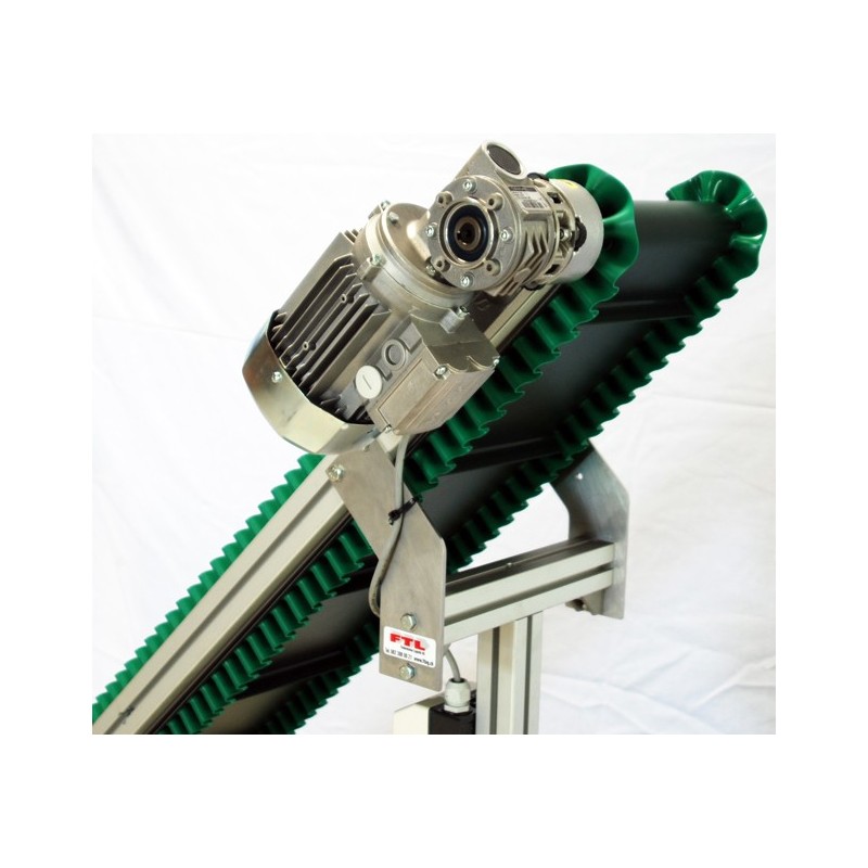 Der Aufbau dieser Förderbänder erfolgt mit Standard-Aluprofilen, somit sind fast alle Wünsche bezüglich Breite und Länge möglich. Dieser modulare Aufbau ermöglicht eine kurzfristige Lieferung. Anstelle eines Getriebemotors können je nach Kundenwunsch auch Trommelmotoren zum Einsatz kommen.